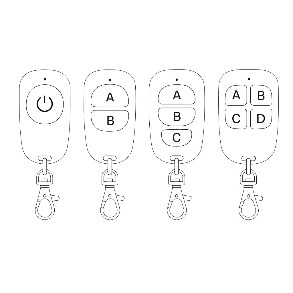 Unità fisiche ergonomiche per avanzare i numeri. Specifiche: Impugnatura solida, anti scivolo e copertura fino a 100 mt. 1, 2, 3 o 4 tasti.